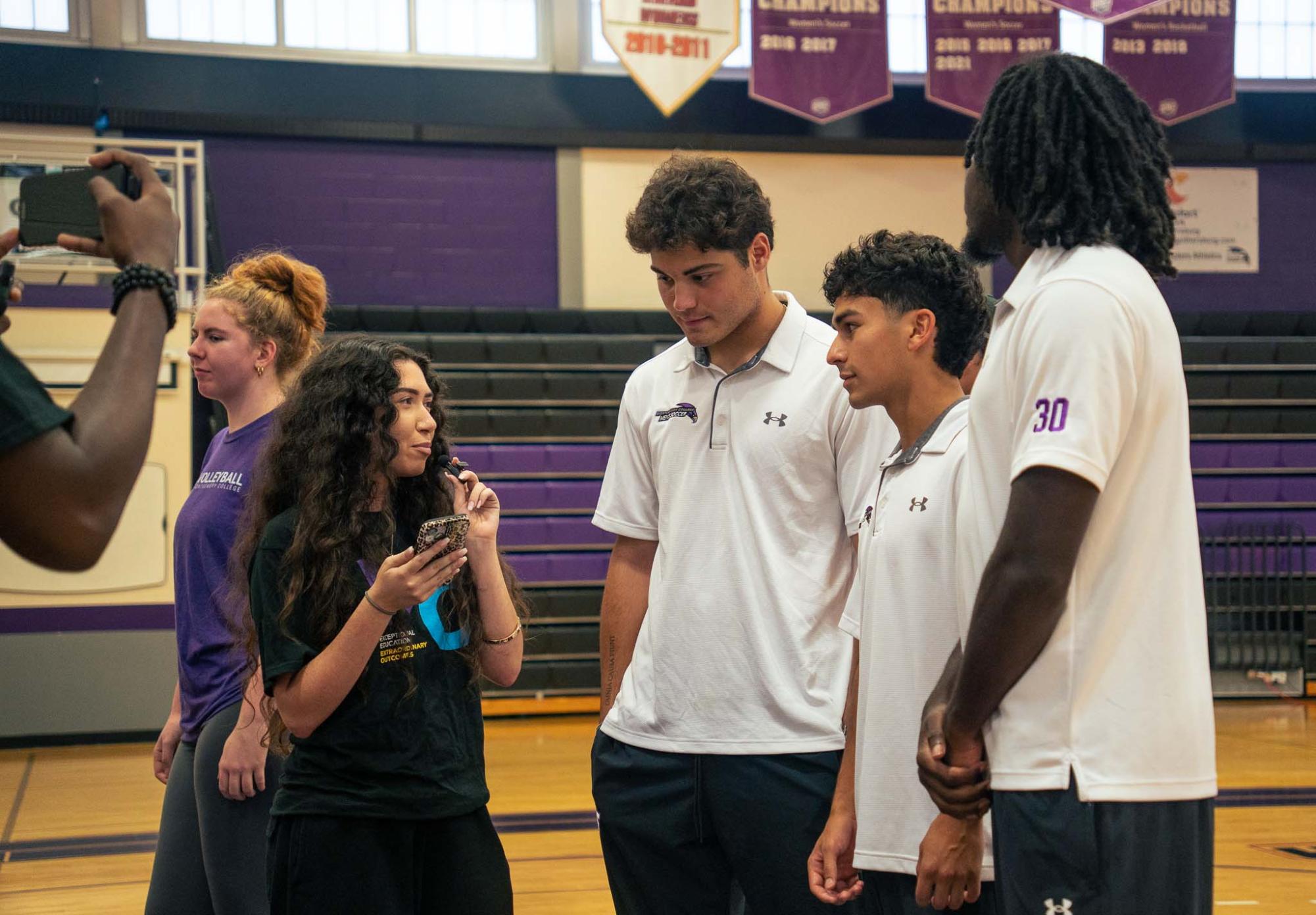 Student Ambassador Venoose interviews members of the Men’s Soccer Team (Photo Credit: Yabez Jackson)